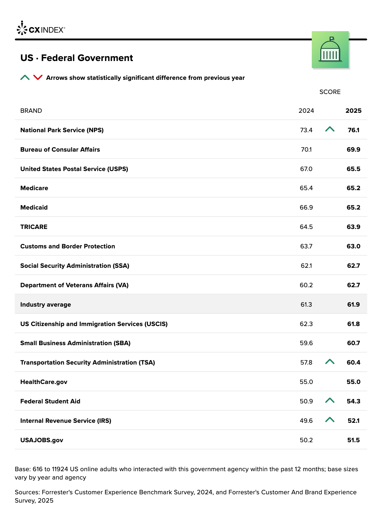 Forrester’s CX Index™ Results For US Federal Government Agencies, 2025